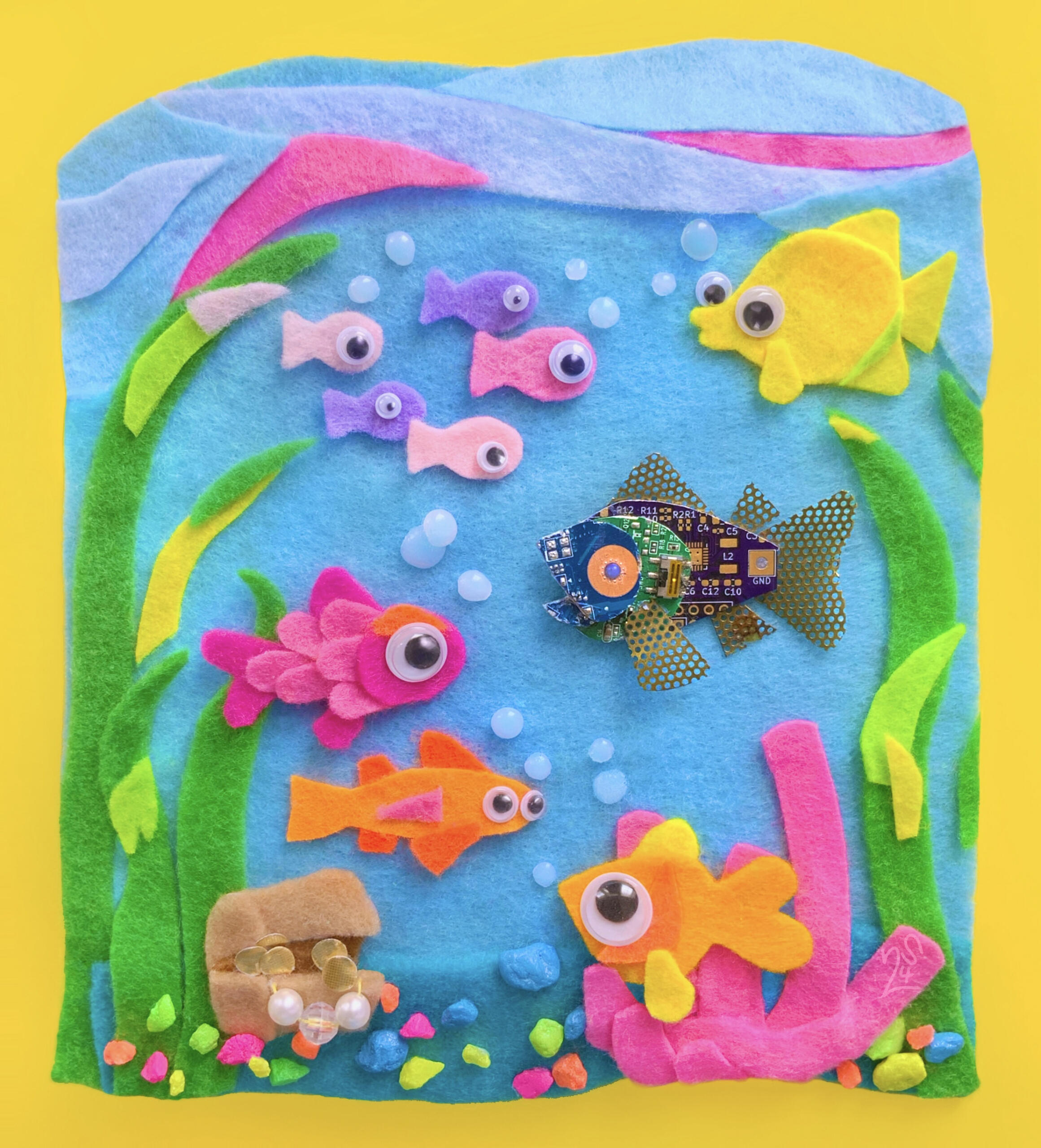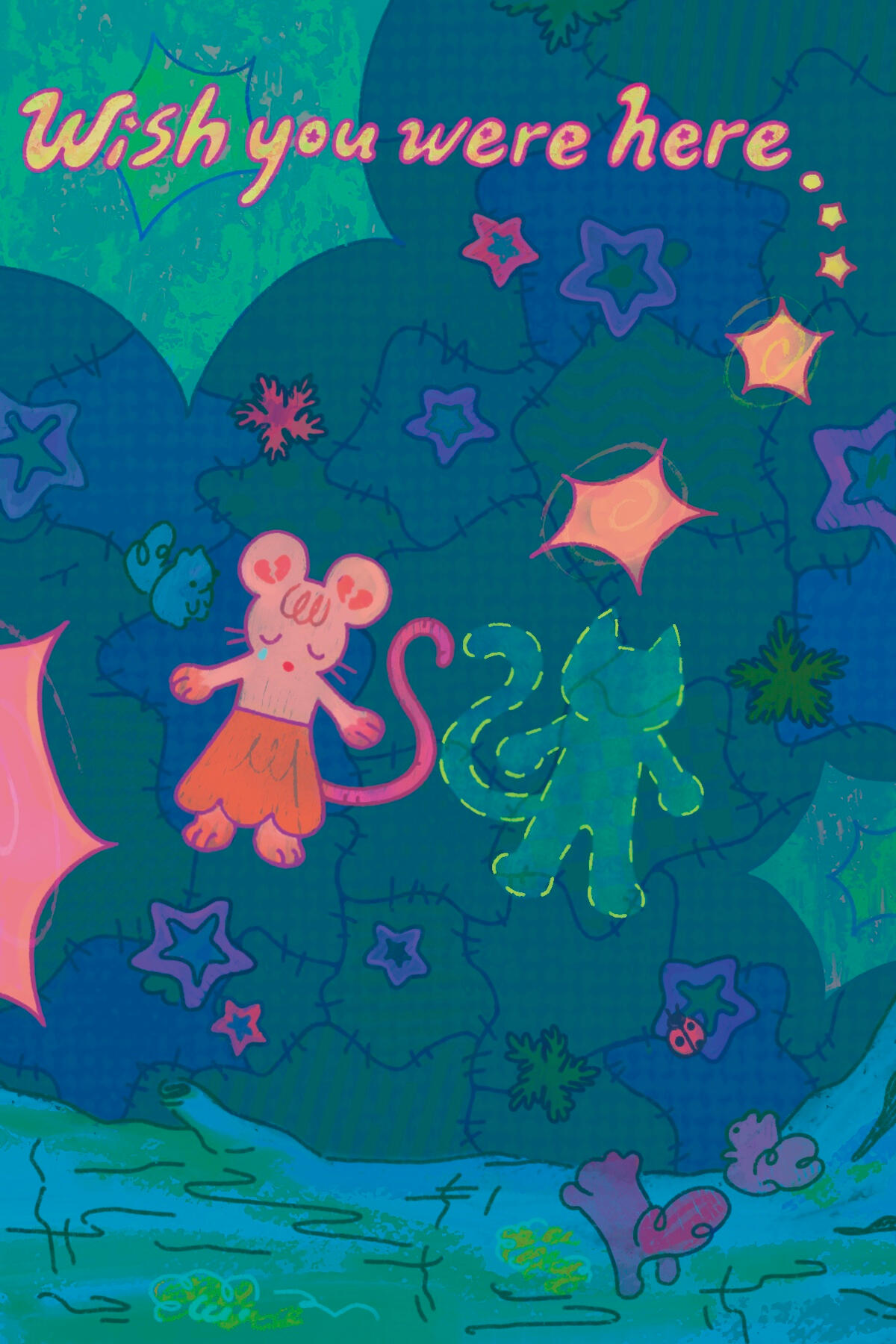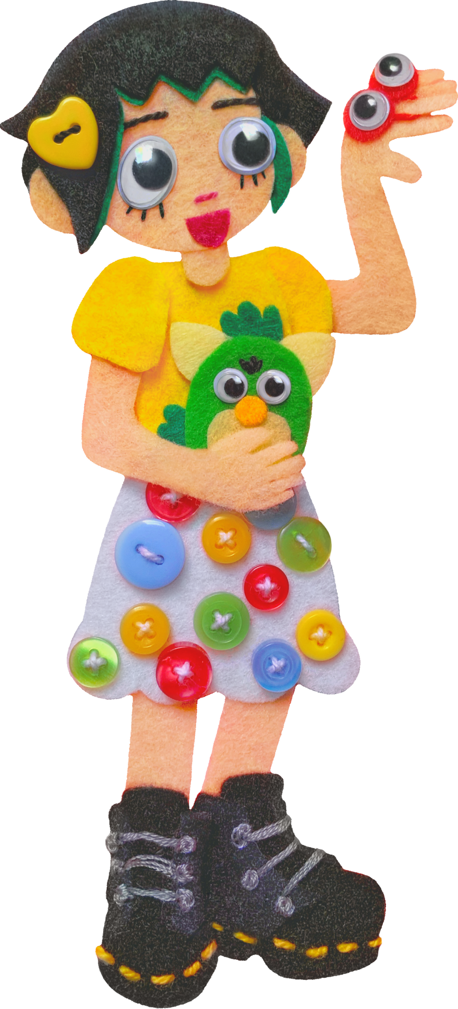 My main focus is crafty felt collages made with textiles, googly eyes, and found objects, but I also love to do digital work and traditional painting! Outside of art, I'm a big fan of furbies, rodents, and fashion.