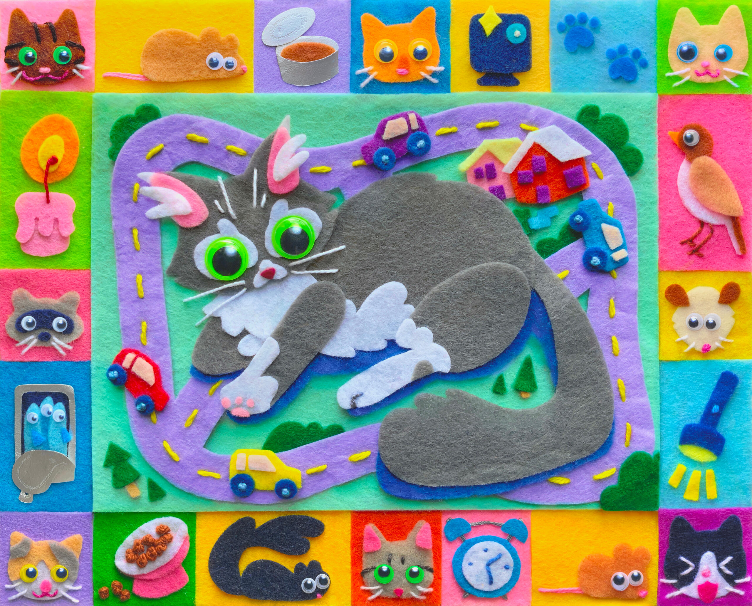 My thesis children's book project, made traditionally with felt, embroidery, and other tactile materials.